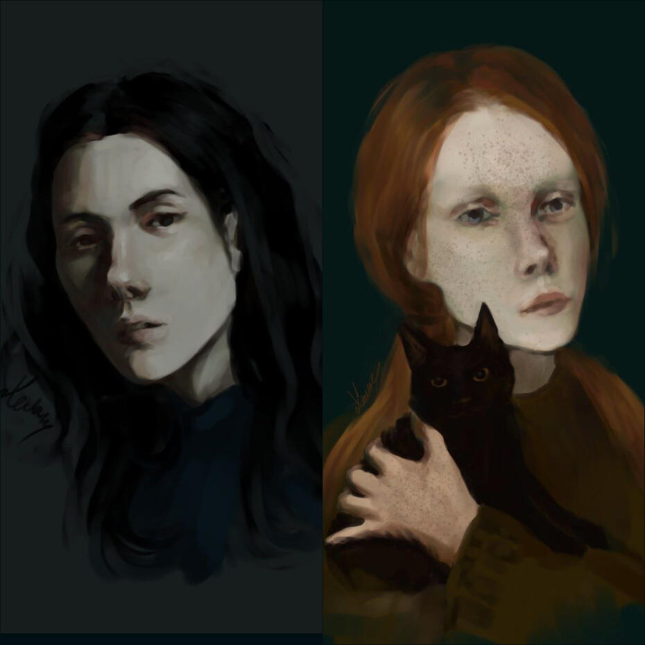 Я работаю в диджитал, создаю портреты персонажей, одно- многофигурные композиции по фото, ТЗ. Также, книжные иллюстрации и образы конкретных героев.