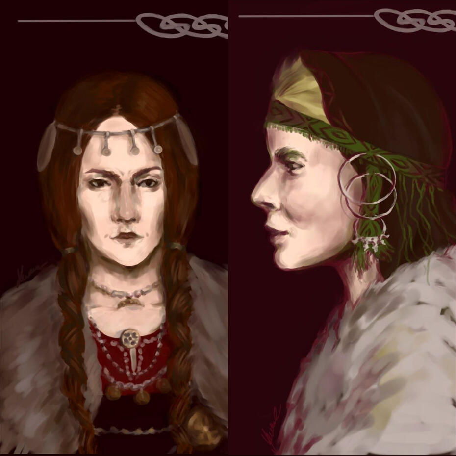 Эти портреты, Сигрид Гордой и Ингигерды Олафсдоттир, созданы по описанию в сагах "Круга Земного".