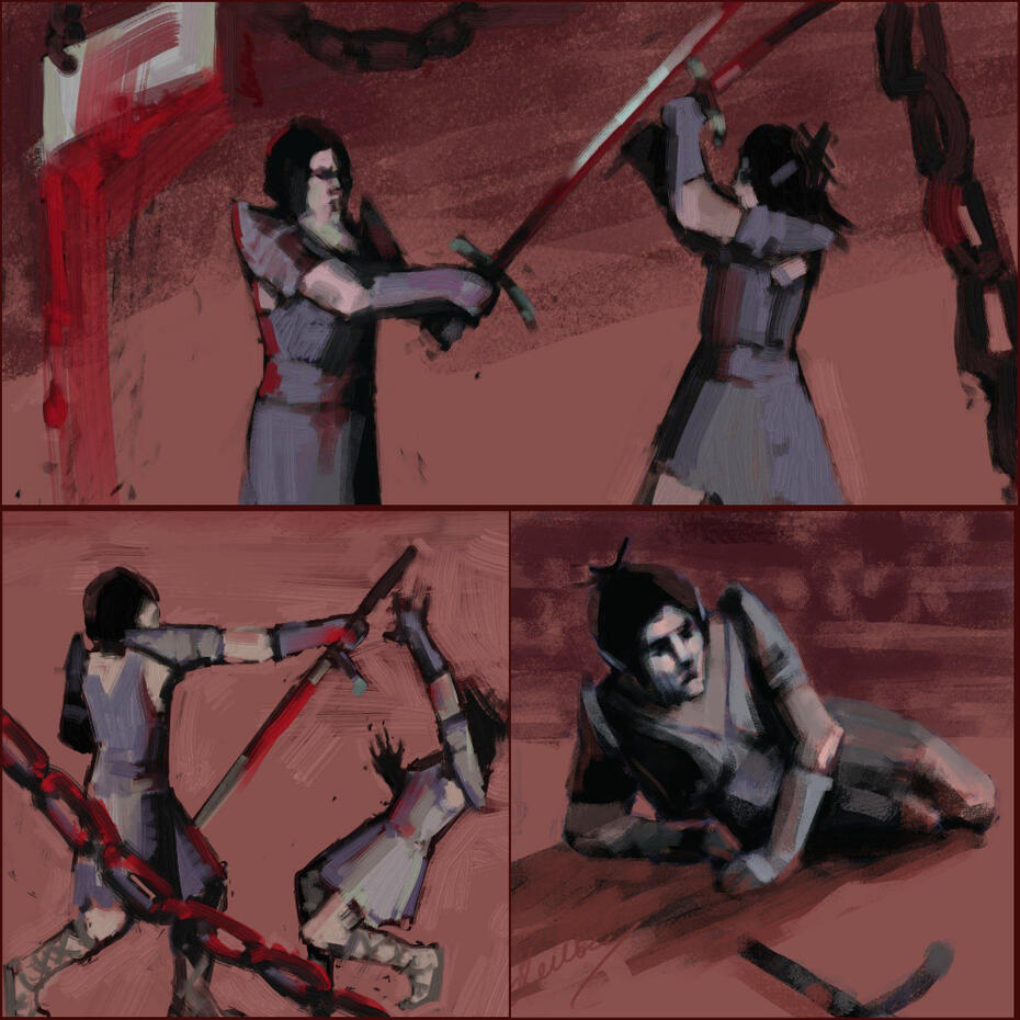 Здесь представлена серия работ по игре The elder scrolls IV: Oblivion, вдохновленная сражениями на арене.